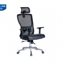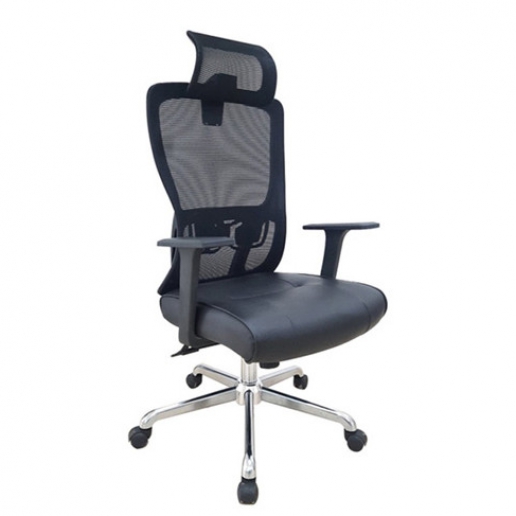 Ghế lưới lưng cao, khung tựa nhựa bọc vải lưới, đệm bọc PVC may trang trí. Ghế có khả năng điều chỉnh độ cao và độ ngả tựa, tay chữ T tăng chỉnh được chiều cao. Chân thép mạ