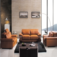 Ghế Sofa 3 – 2 – 1 bọc da thật mặt tiếp xúc với người sử dụng, có ốp Inox trang trí. Đệm ghế có thể điều chỉnh kéo dài ra để nghỉ thư giãn. Đầu tựa có thể điều chỉnh góc ngả.