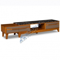 Mặt kệ sử dụng chất liệu lõi đá tự nhiên được phủ vân nhân tạo. Kệ có thể điều chỉnh kích thước từ 1600 – 2000mm tùy vào diện tích phòng khách.