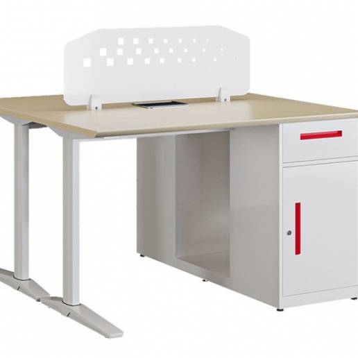 - Bàn sử dụng 02 chân sắt và 02 tủ phụ để tài liệu bố trí đối xứng, ở giữa có ngăn để vừa 2 CPU