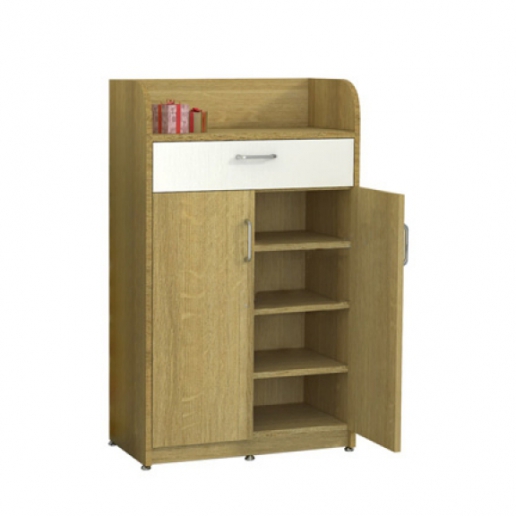 Tủ giày thông minh gỗ công nghiệp TG302 chất liệu Melamine toàn bộ. Tủ được thiết kế gồm 4 ngăn để giày và 1 ngăn kéo để đồ. Phần nóc được thiết kế để đồ trang trí, mũ bảo hiểm.